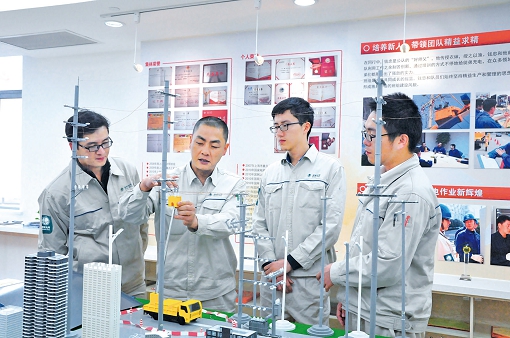 國網(wǎng)檢修公司員工在雙創(chuàng)基地開展一次設(shè)備研究。在最大限度激發(fā)內(nèi)部活力的同時,公司還堅持眼光向外,以開放合作的姿態(tài)匯聚更多科創(chuàng)力量。為加快形成產(chǎn)學(xué)研用一體的科技創(chuàng)新體系,公司與清華大學(xué)、西安交通大學(xué)等高校建立了聯(lián)合研究機構(gòu)。同時,公司建成“國家級、公司級、各單位級”三級實驗室體系,面向全社會開放100個實驗室(包括19個國家級實驗室),并鼓勵社會各界積極參與共建公司各級實驗室。公司科技成果孵化轉(zhuǎn)化平臺也已建立。2020年,職工創(chuàng)新成果孵化轉(zhuǎn)化達(dá)200項,公司直屬科研單位年度科技成果轉(zhuǎn)化收入達(dá)6.5億元,特高壓換流閥、智能配電終端、安全芯片等一批專利技術(shù)的轉(zhuǎn)化落地,有效提升了電網(wǎng)裝備技術(shù)水平。依托豐富的科技創(chuàng)新成果,公司形成了規(guī)劃設(shè)計、投資運營、工程建設(shè)、裝備制造、技術(shù)標(biāo)準(zhǔn)一體化“走出去”的國際合作模式。截至目前,公司累計主導(dǎo)編制國際標(biāo)準(zhǔn)84項,推動515項中國標(biāo)準(zhǔn)在“一帶一路”沿線國家應(yīng)用,顯著提升了我國在國際電工領(lǐng)域的影響力和話語權(quán)。日益完善的科技創(chuàng)新體系和日趨成熟的成果轉(zhuǎn)化機制,培養(yǎng)了越來越多優(yōu)秀的科技創(chuàng)新人才。目前,公司共擁有國家級專家人才365名,兩院院士7名,國家有突出貢獻的中青年專家13名,百千萬人才工程國家級人選28名,中華技能大獎獲得者5名。